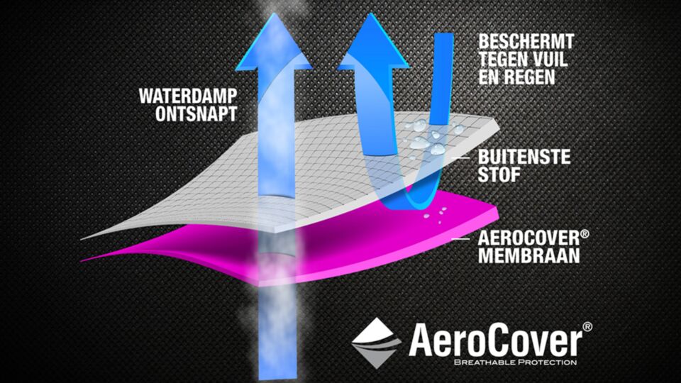 – Das atmungsaktive AeroCover®-Gewebe ist wasserabweisend, reduziert Kondensation und verhindert Schimmelbildung.